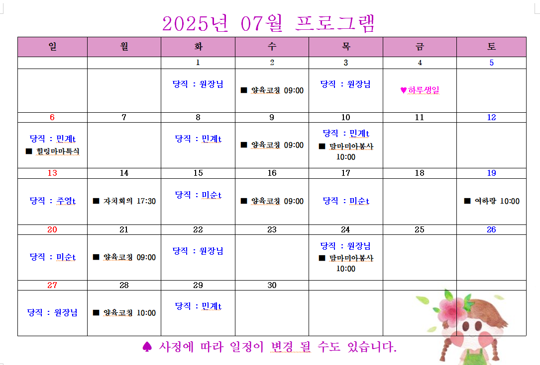 [ÀÏÁ¤] 2025³â 07¿ù ÇÁ·Î±×·¥ ÀÏÁ¤Ç¥