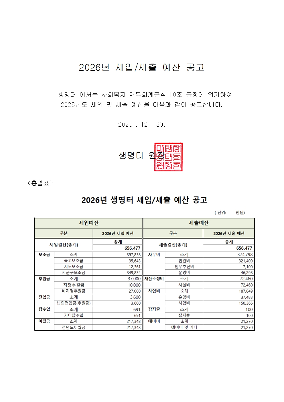 »ý¸íÅÍ 2026³â ¿¹»ê °ø°í