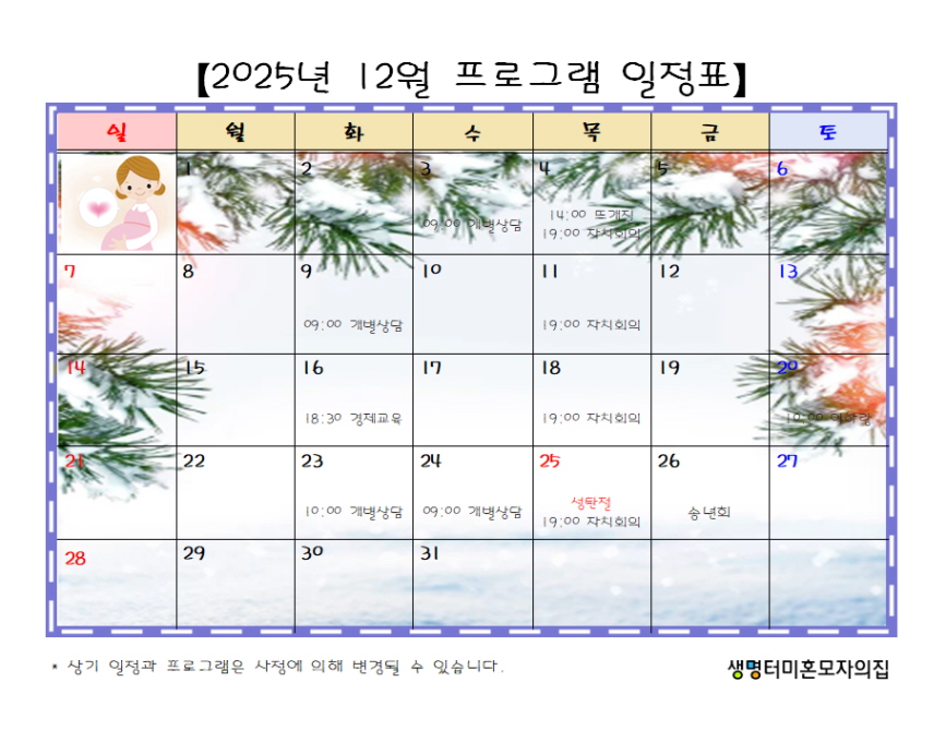 <2025³â 12¿ù ÇÁ·Î±×·¥ ÀÏÁ¤Ç¥>