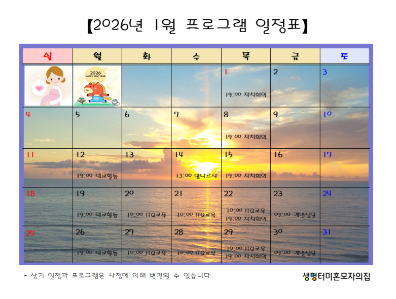 <2026³â 1¿ù ÇÁ·Î±×·¥ ÀÏÁ¤Ç¥>