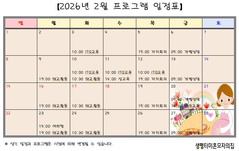 2026³â 2¿ù ÇÁ·Î±×·¥ ÀÏÁ¤Ç¥